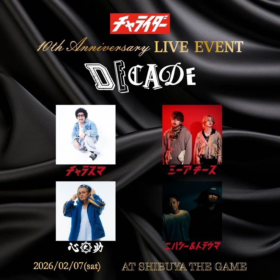 【東京】チャライダー 10th Anniversary LIVE EVENT "DECADE" LIVE 2026/02/07(土) SHIBUYA THE GAME 地図を表示 URLをコピーする 報告する